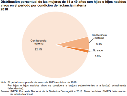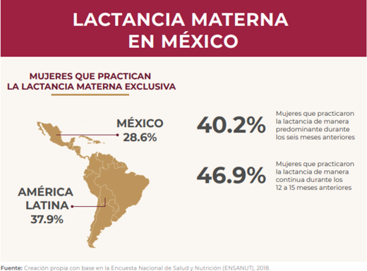 3- La Secretaría de Salud y del Trabajo del Gobierno federal y el Instituto Mexicano del Seguro Social IMSS publicaron la Guía para la instalación y funcionamiento de salas de lactancia, donde se expone el porcentaje de mujeres que practicaron la lactancia materna en México.