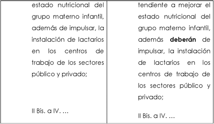 Como se puede observar, no es obligatorio que se establezcan los lactarios que resultan indispensables para muchas mujeres, no se trata solo de una política pública, de un programa de gobierno, el establecer la obligación de los lactarios contribuiría para garantizar derechos y cambiaría la vida de muchas mujeres.