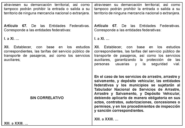 La Ley General de Movilidad y Seguridad Vial, vigente desde 2022 y actualizada, despliega este mandato y fija las bases de coordinación intergubernamental en la materia, la presente iniciativa profundiza dicho marco al homologar precios y conceptos mediante un tabulador nacional de observancia general aplicable en vías federales, estatales y municipales.