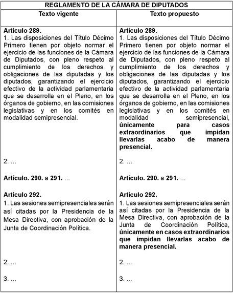 1. Las disposiciones del Título Décimo Primero tienen por objeto normar el ejercicio de las funciones de la Cámara de Diputados, con pleno respeto al cumplimiento de los derechos y obligaciones de las diputadas y los diputados, garantizando el ejercicio efectivo de la actividad parlamentaria que se desarrolla en el Pleno, en los órganos de gobierno, en las comisiones legislativas y en los comités en modalidad semipresencial, únicamente para casos extraordinarios que impidan llevarlas acabo de manera presencial.