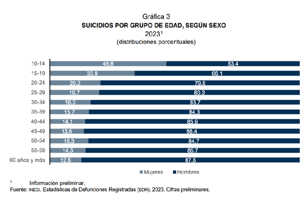 Tercero. El suicidio es una de las principales problemáticas de salud pública en México. Según datos del INEGI, en 2023 se registraron 8,837 suicidios en el país, con una tasa de 6.8 por cada 100 mil habitantes, siendo los jóvenes de entre 15 y 29 años el grupo más afectado. Estos indicadores reflejan la necesidad urgente de fortalecer la detección temprana, la intervención en crisis y el acompañamiento comunitario.